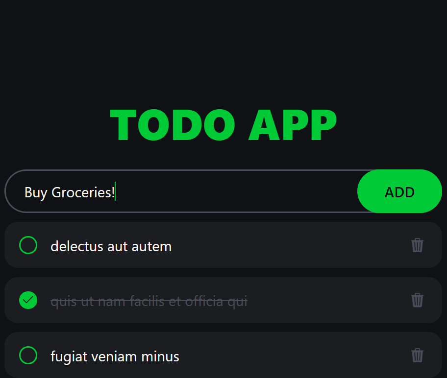 This project offers a simple but aesthetic approach to the classic to do application. It includes adding, removing and completing features (strikethrough effect) and API connectivity using a local pre-made server.